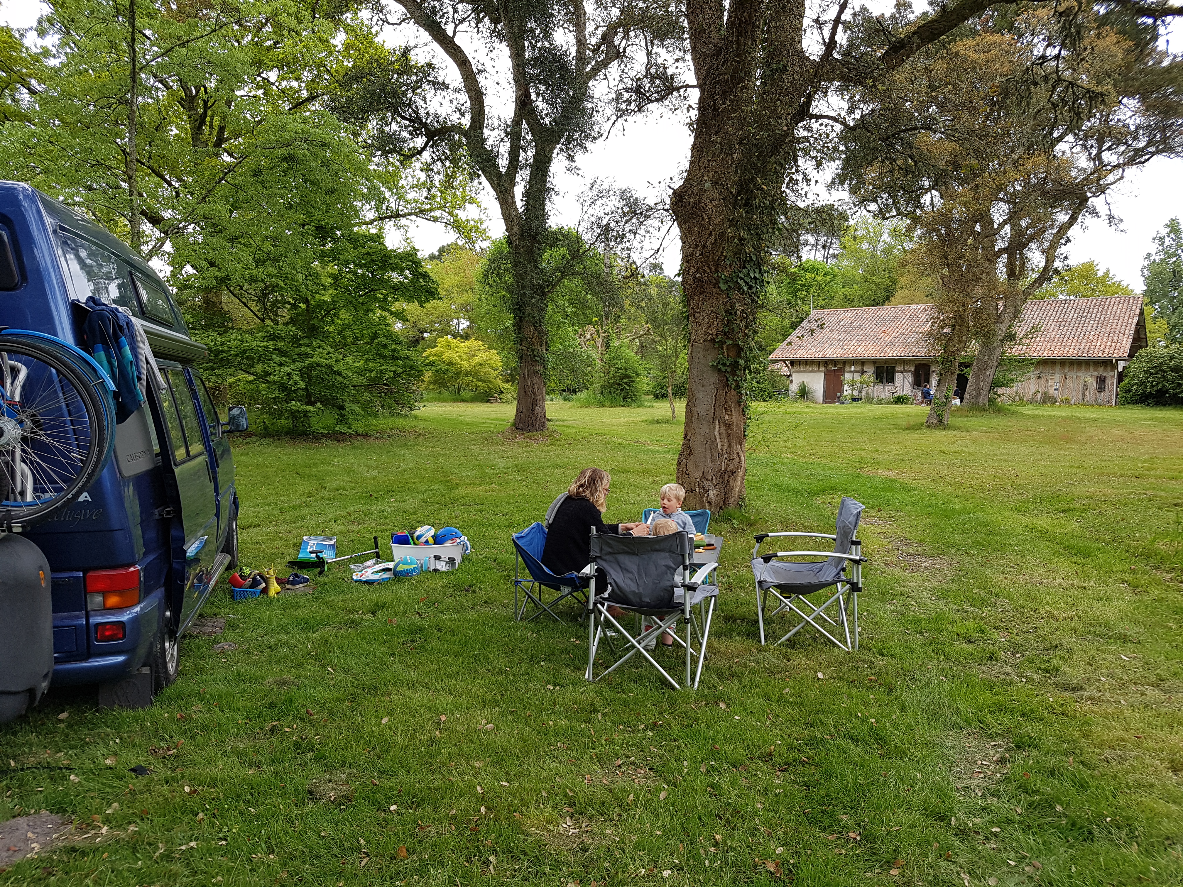 Oei wat is Frankrijk toch een groot land. 29 april, over twee weken al, hebben we afgesproken met de familie in Zuid Spanje. Vandaag dus de hele dag gereden zodat we nu nog geen 100 km van de grens met Spanje zitten. De jongens doen het heel goed in de camper. Ze slapen allebei enorm veel, hebben blijkbaar ook wat in te halen. Onderweg stoppen we regelmatig, maar ook ‘Bert en Ernie’ en een Spaanstalige CD in de auto doen het goed. Mels is gevoelig voor sfeer, dus hij roept vaak precies op het juiste moment ‘VAKANTIE!’, wat iedereen weer blij maakt. Willem speelt graag met andere kinderen en heeft heel goed door dat ze een andere taal spreken. Op een Frans plein wilde een jongetje tikkertje spelen en riep ‘touché!’. Willem had er wel zin in en vroeg hem; ‘zal ik jou nu touchen?’